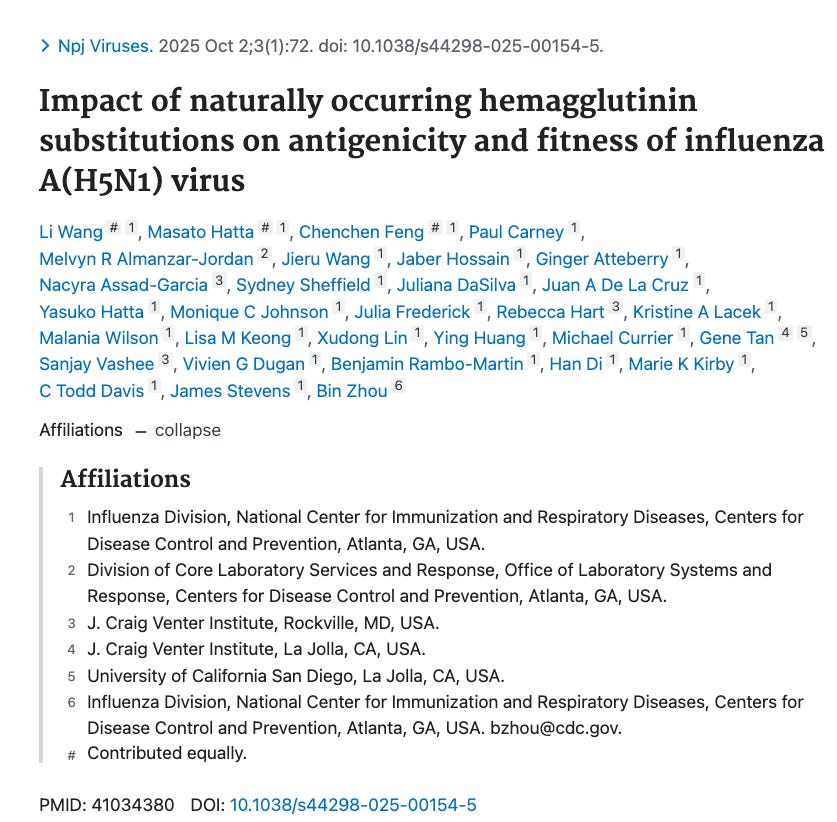 CDC Creates New Bird Flu Virus With Enhanced Immune System Evasion in Georgia Lab: Journal 'npj Viruses'
