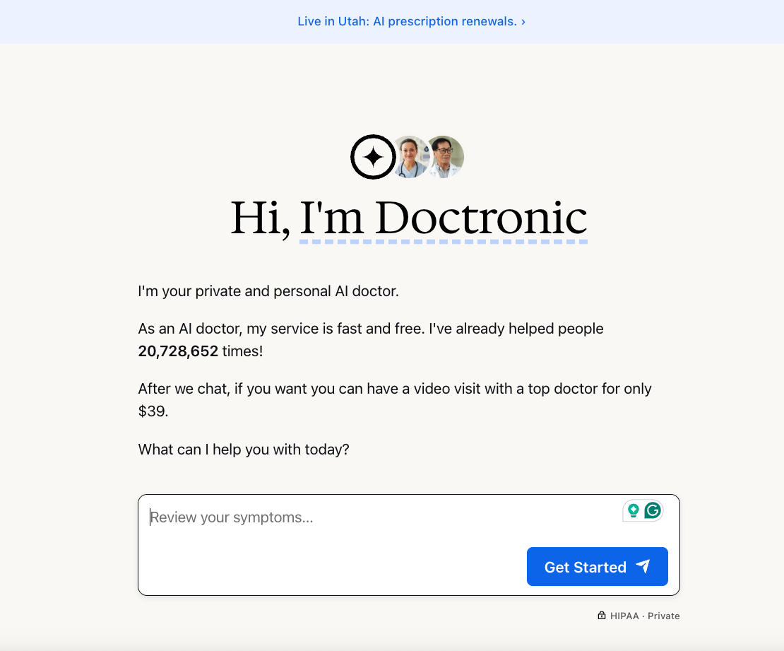 In April of last year, Pavell confirmed Doctronic was seeing around 50,000 people a week.