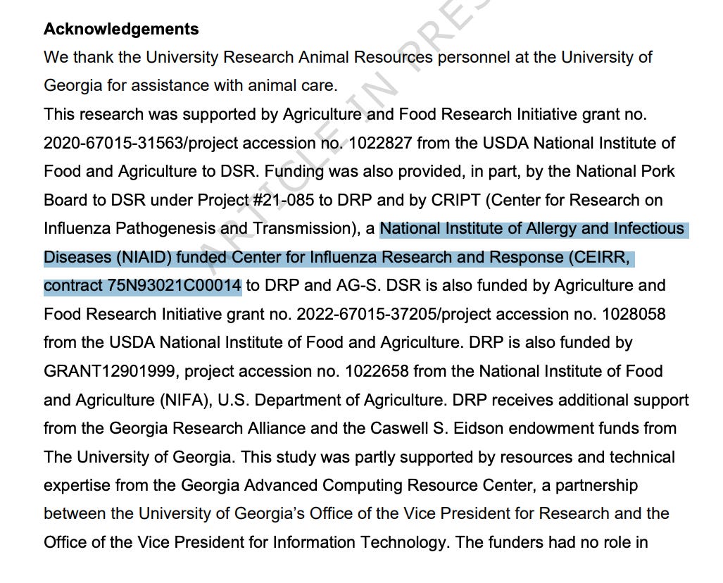 “Funding was also provided, in part, by … CRIPT (Center for Research on Influenza Pathogenesis and Transmission), a National Institute of Allergy and Infectious Diseases (NIAID) funded Center for Influenza Research and Response (CEIRR, contract 75N93021C00014…).”