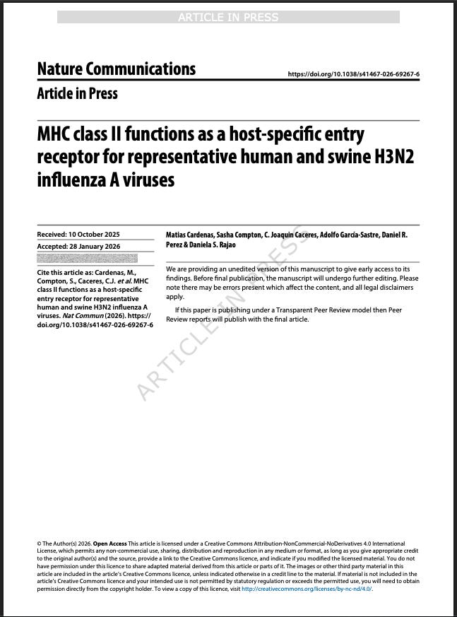 “Our findings revealed that MHCII can serve as a sialic acid-independent entry receptor to H3N2 FLUAV.”