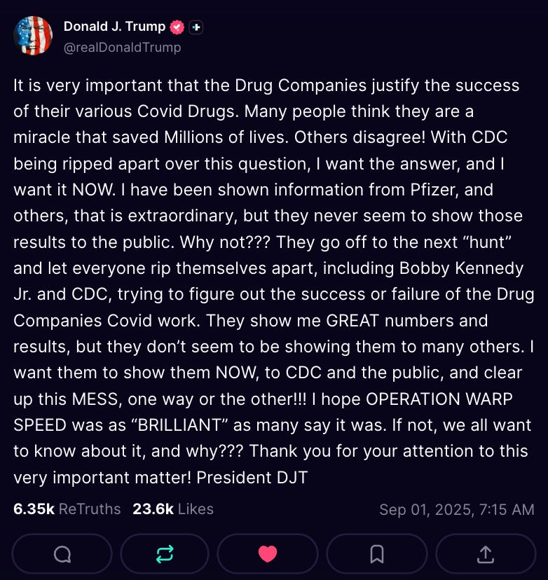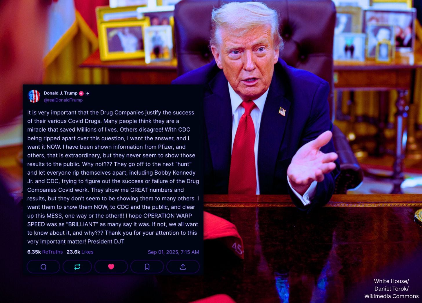 President Donald J. Trump issued a fiery post on Truth Social this morning, calling on Pfizer and other pharmaceutical companies to publicly release their internal COVID-19 data and raising doubts about whether Operation Warp Speed was truly the triumph it has long been hailed as.
